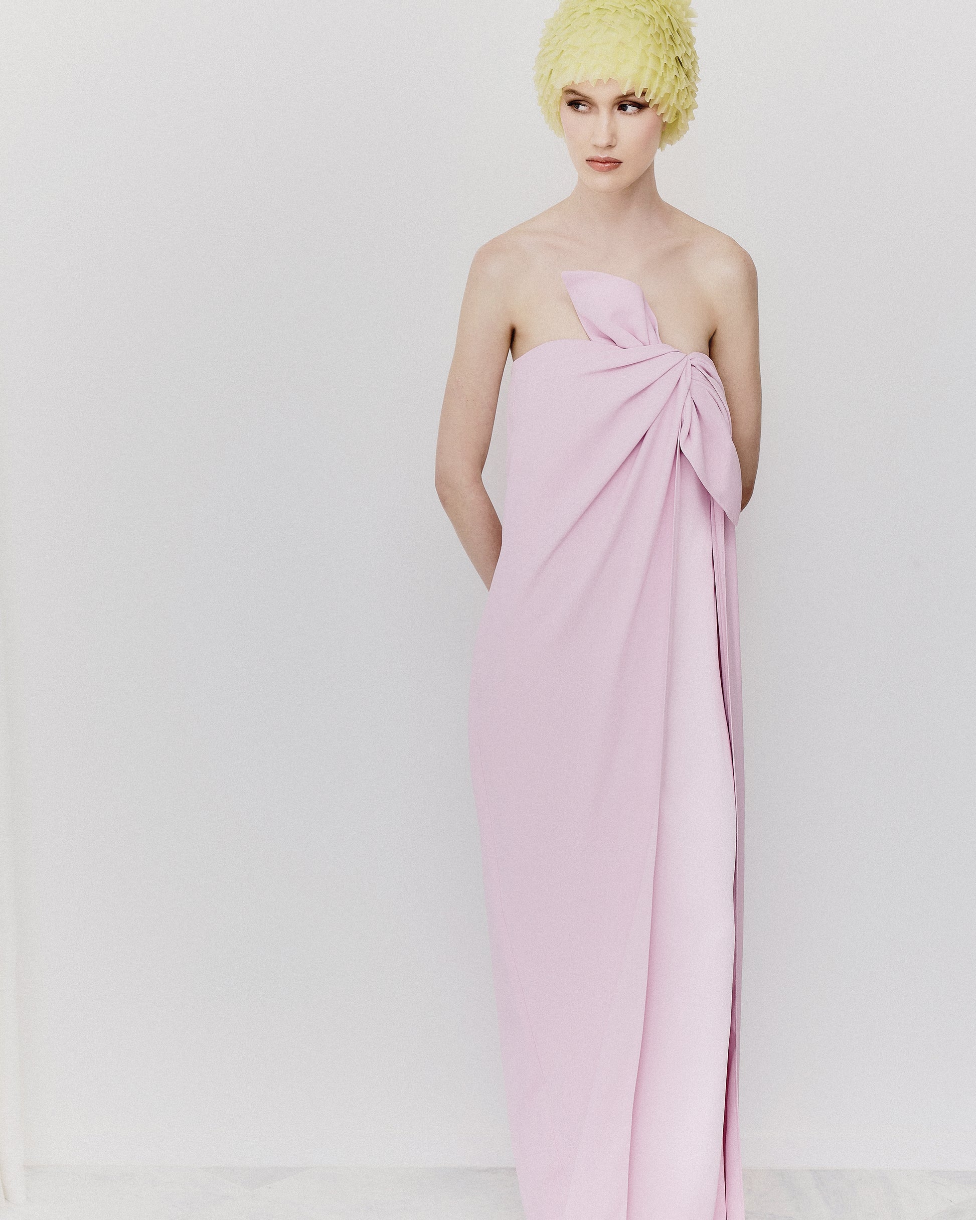O nome revela a inspiração. Um gesto cotidiano toma forma de vestido e se torna a peça mais marcante da festa.