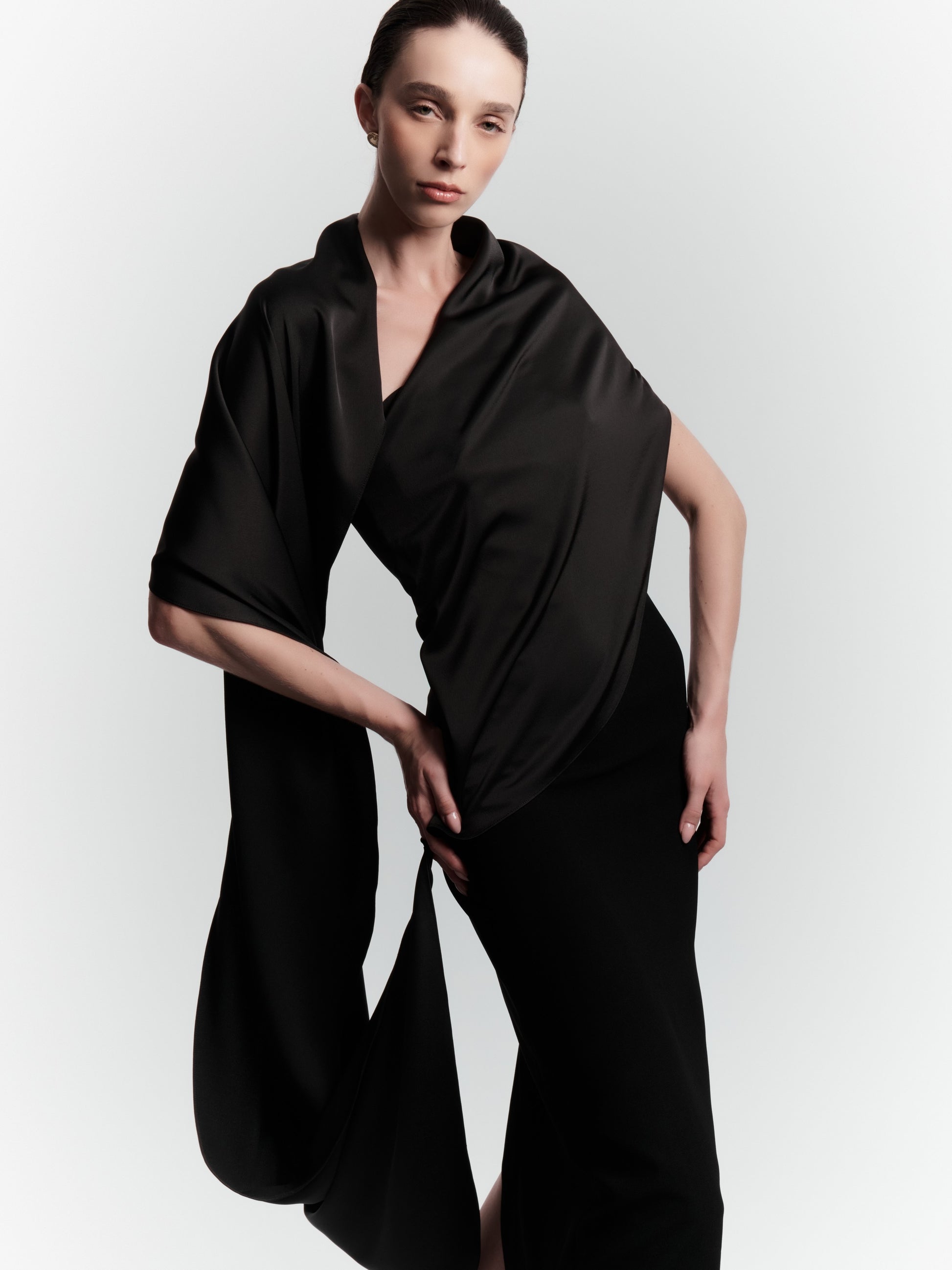 Feminino, dramático e romântico, o Vestido Consolação é uma peça statement que faz da festa palco para a sua beleza.