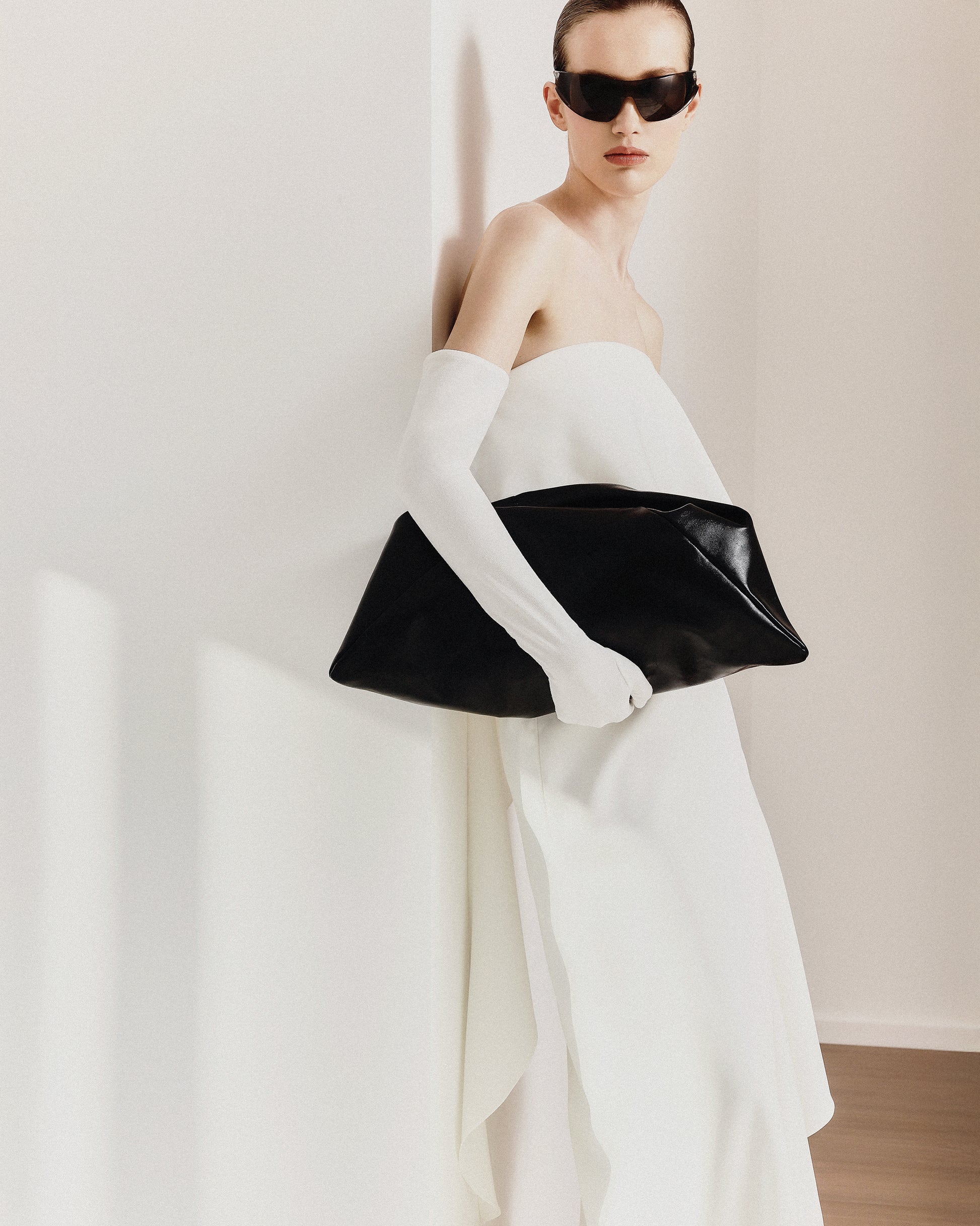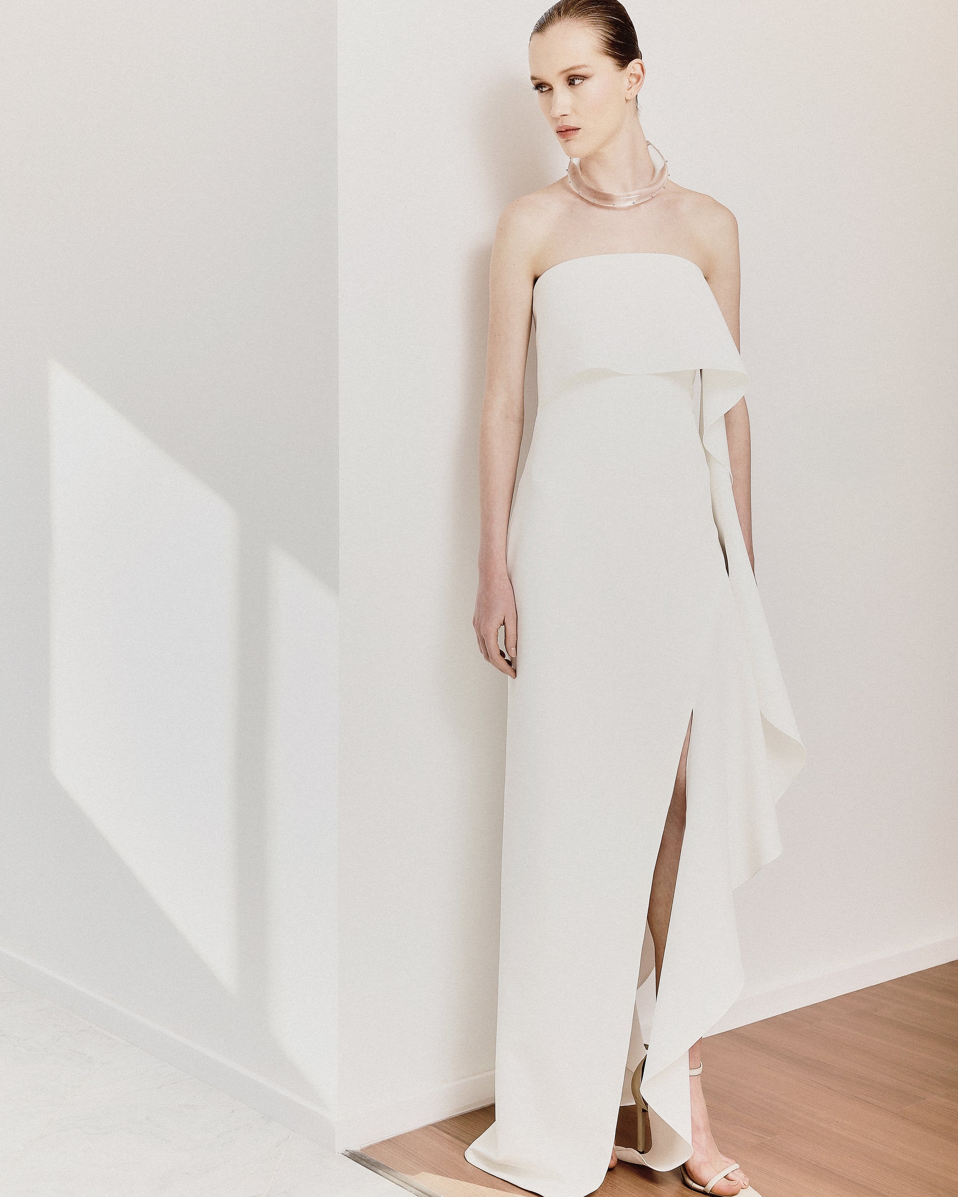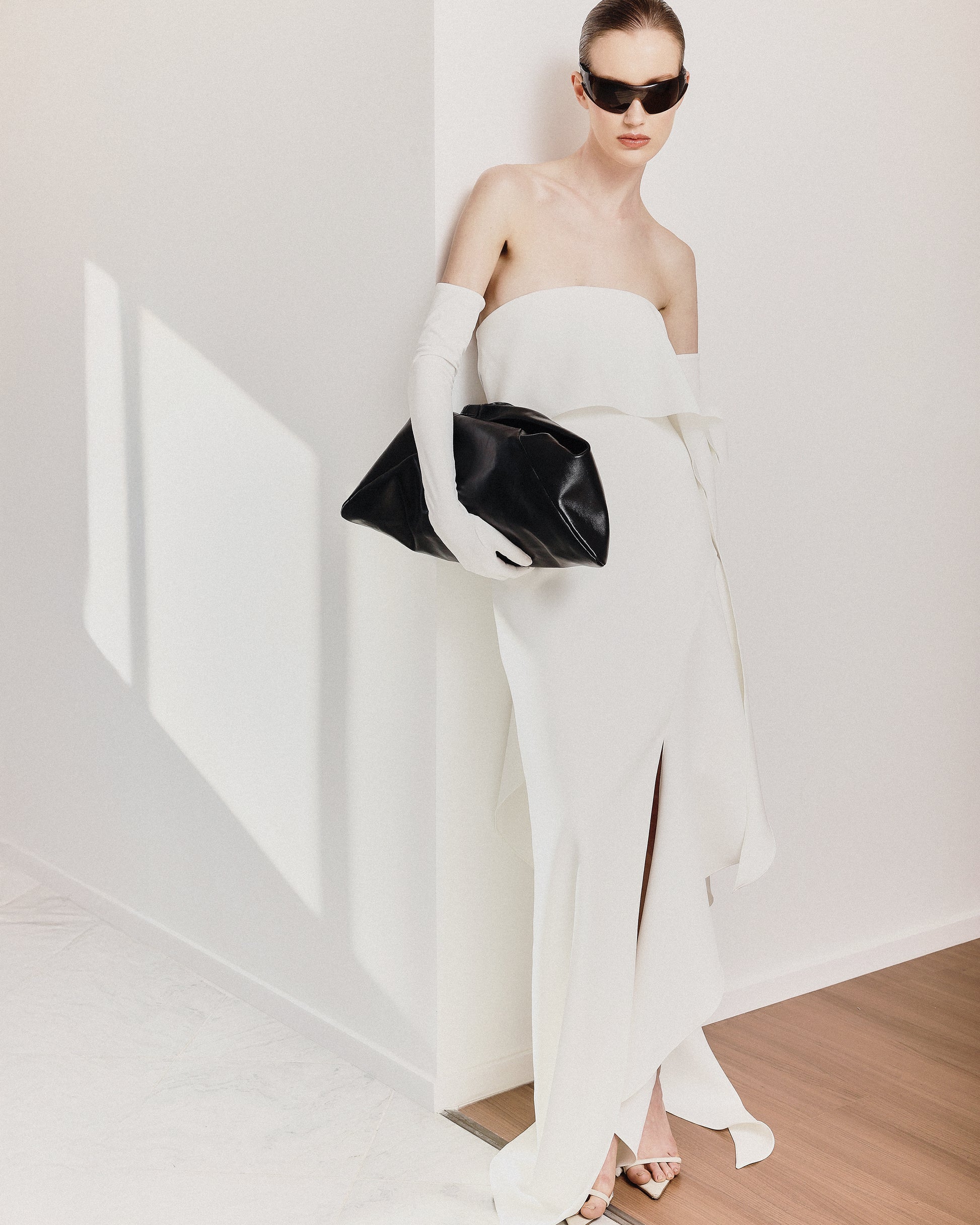 - Decote sem alça estruturado por barbatanas